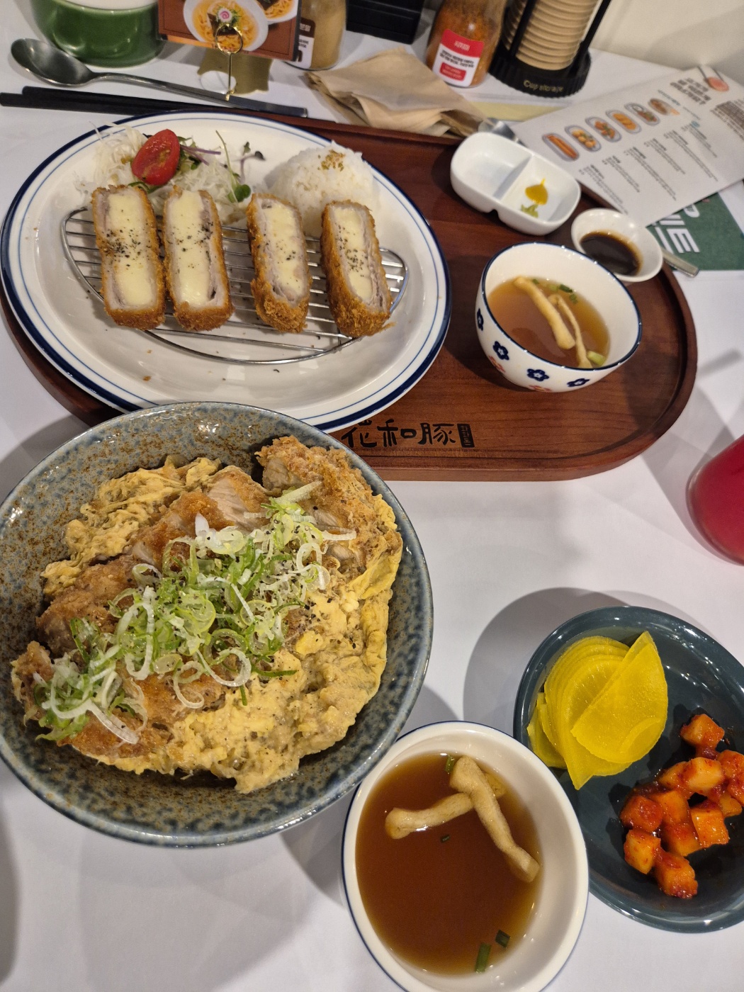 메뉴는 크게 두 가지를 주문했습니다. 먼저 치즈가 듬뿍 들어간 치즈 돈가스는 바삭한 튀김옷을 깨물면 고소한 치즈가 흘러나와 아이들이 특히 좋아했습니다. 그리고 카츠동은 부드러운 계란과 돈가스가 밥 위에 올려져 있어 한 그릇으로 든든하게 식사를 해결할 수 있었습니다.