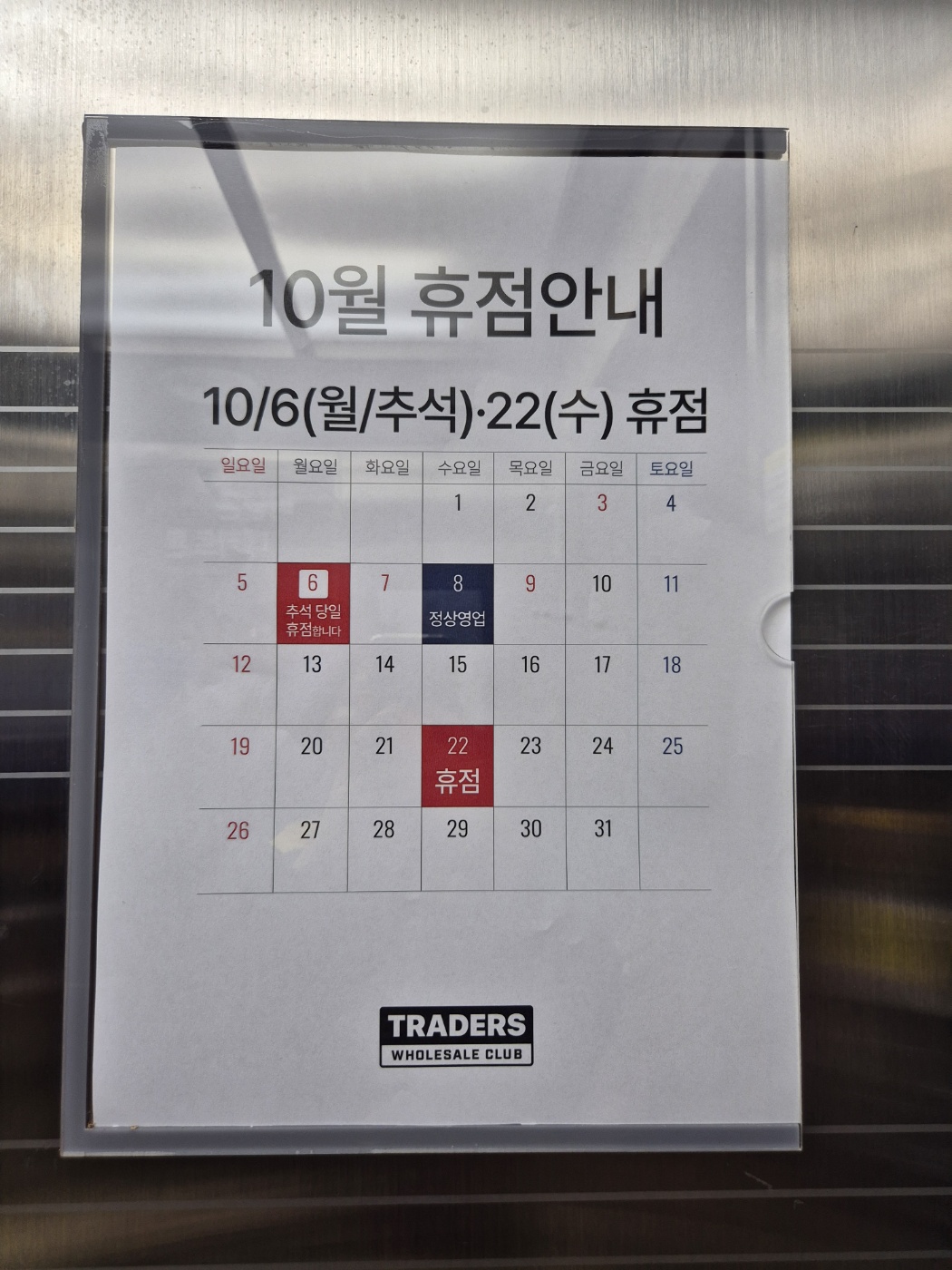 2025년 10월 추석 휴점 안내